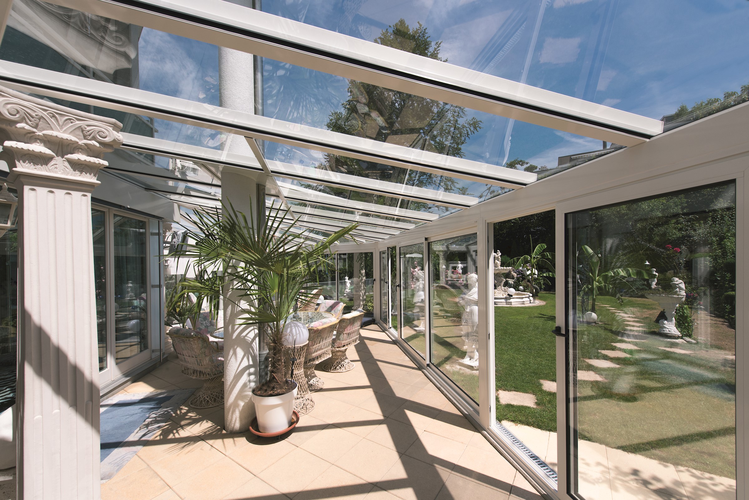 Ambiance terrasoverkapping, tuinkamer, wit constructie, glazen wanden