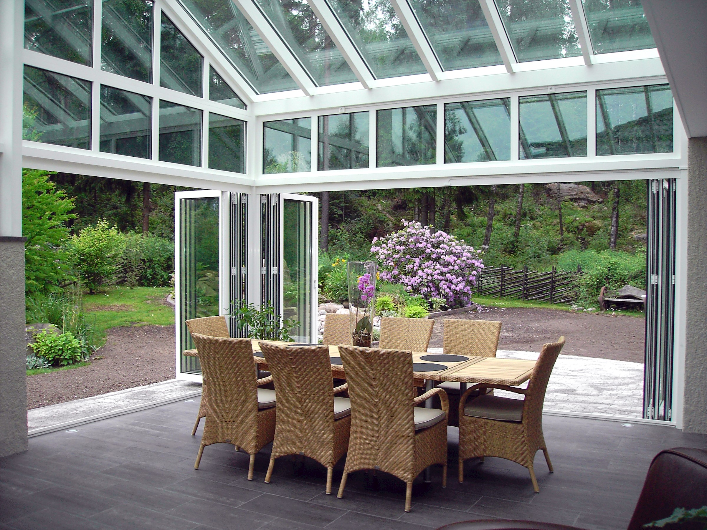 Maak van je overkapping een tuinkamer met de toevoeging van glazen wanden! Dankzij een glazen wand kan je nog eerder in het jaar buiten zitten. Een flexibele wand zoals een vouwwand of schuifwand maakt het mogelijk op de warmere dagen te ventileren.