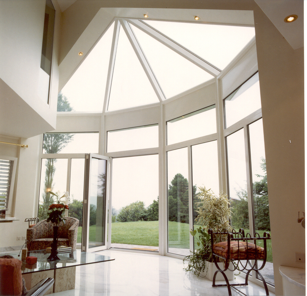 Ambiance terrasoverkapping, tuinkamer, wit constructie, glazen wanden