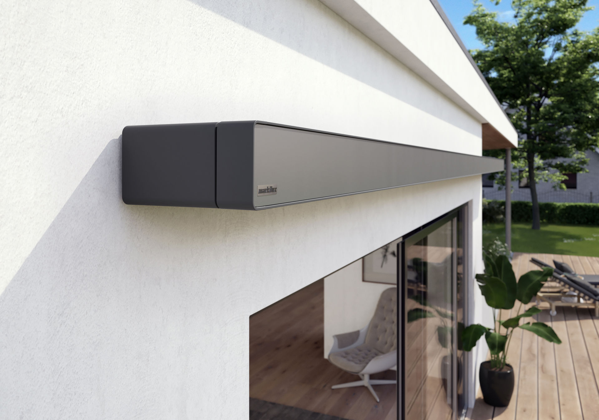 De kunststof frontpaneel de mogelijkheid een unieke uitstraling aan het zonnescherm te geven.