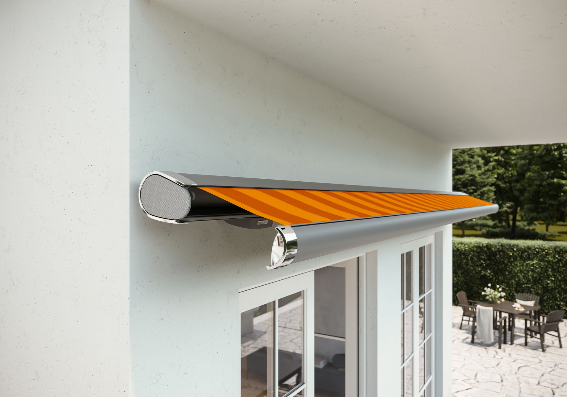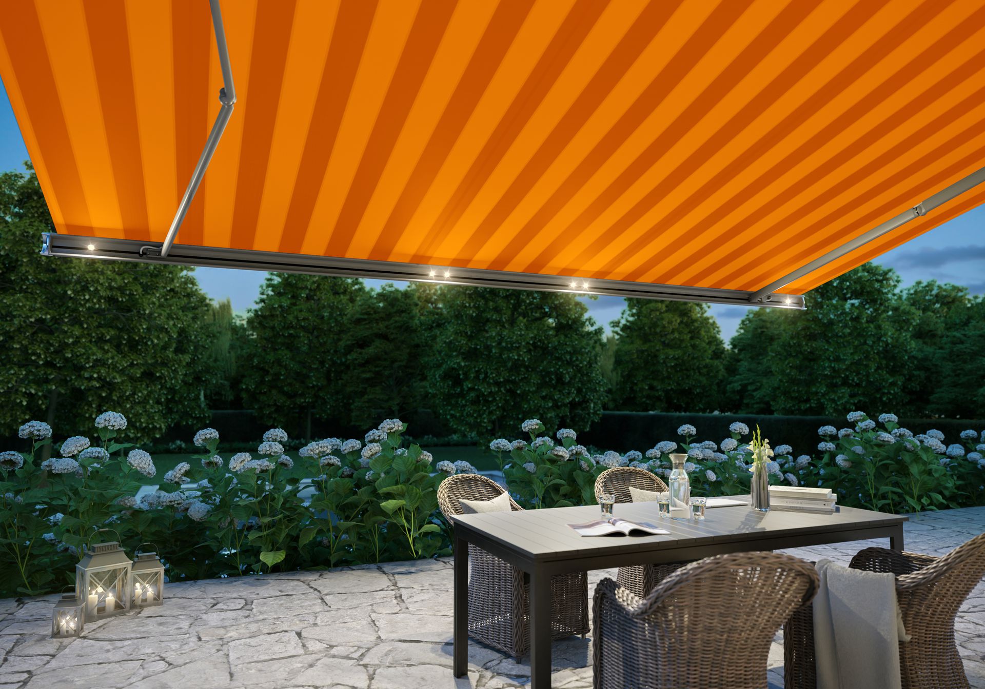Dit is een top-of-the-line knikarmscherm met hoogwaardige technische afwerking en legio extra opties zoals verlichting en een uitrolbare volant. Met de brede collectie schermkleuren, decoratieve elementen en accessoires creëer je jouw eigen individuele zonnescherm, passend bij jouw tuin of balkon.