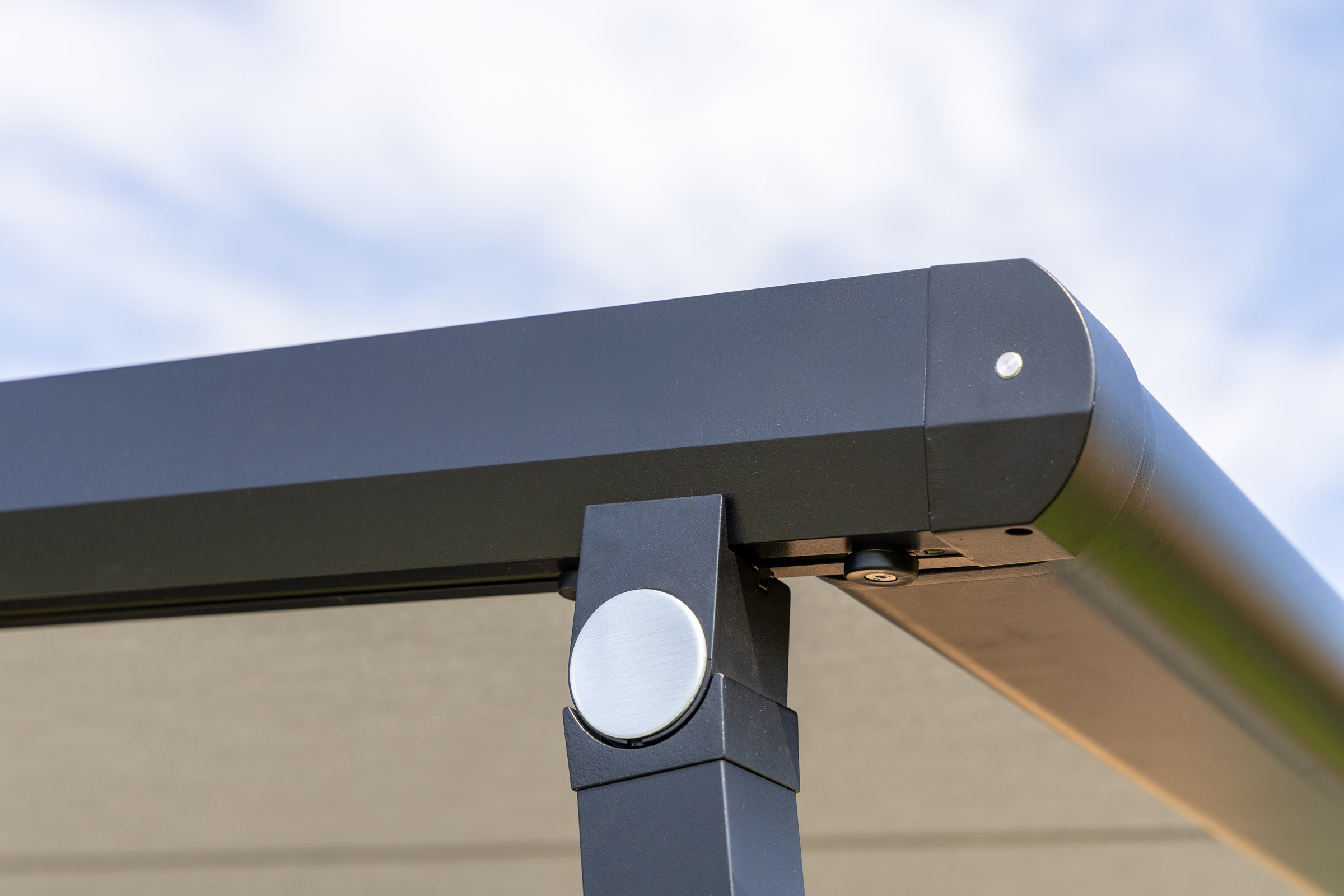 Een ander handig kenmerk van de Viva Pergola is de verstelbare staander. Bij regen kan één van de staanders naar beneden worden gedraaid, zodat het regenwater makkelijk van het doek afloopt. Dit maakt het perfect om ook bij een regenbui buiten te kunnen blijven zitten en optimaal van het terras te genieten. Zo hebben ze niet alleen een comfortabele tuinkamer, maar kunnen ze ook bij minder weer lekker buiten blijven.