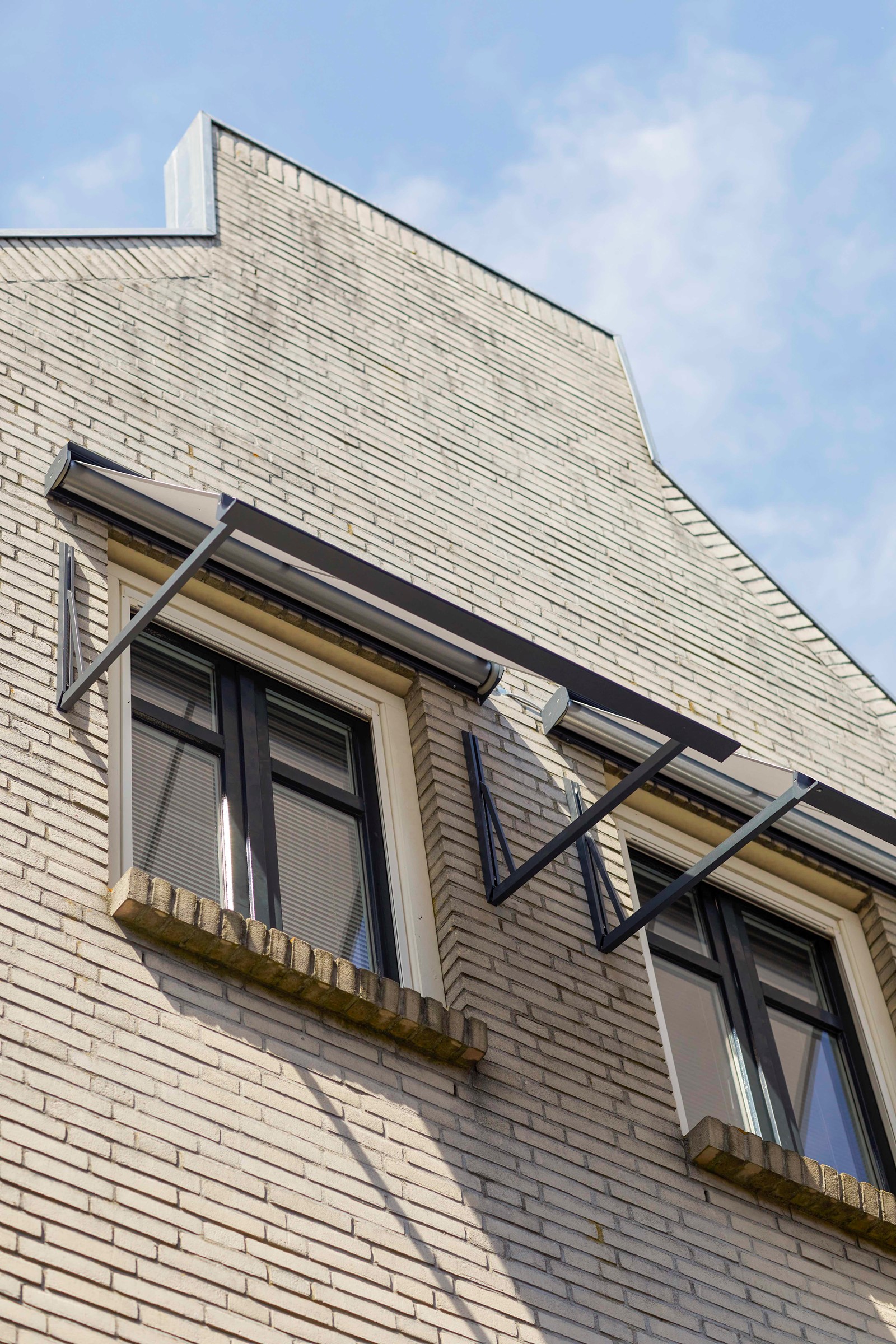 Bij de keuze van de kleur voor de cassette hebben we bewust gekozen voor RAL 7016, dezelfde kleur als onze kozijnen. Dit zorgt voor een harmonieuze uitstraling. Hoewel een witte cassette minder zou opvallen tegen onze witte gevel, was de kans groot dat deze na verloop van tijd vuil zou worden. Nu hoeven we de cassettes niet elke lente schoon te maken, en blijft alles er netjes uitzien.
