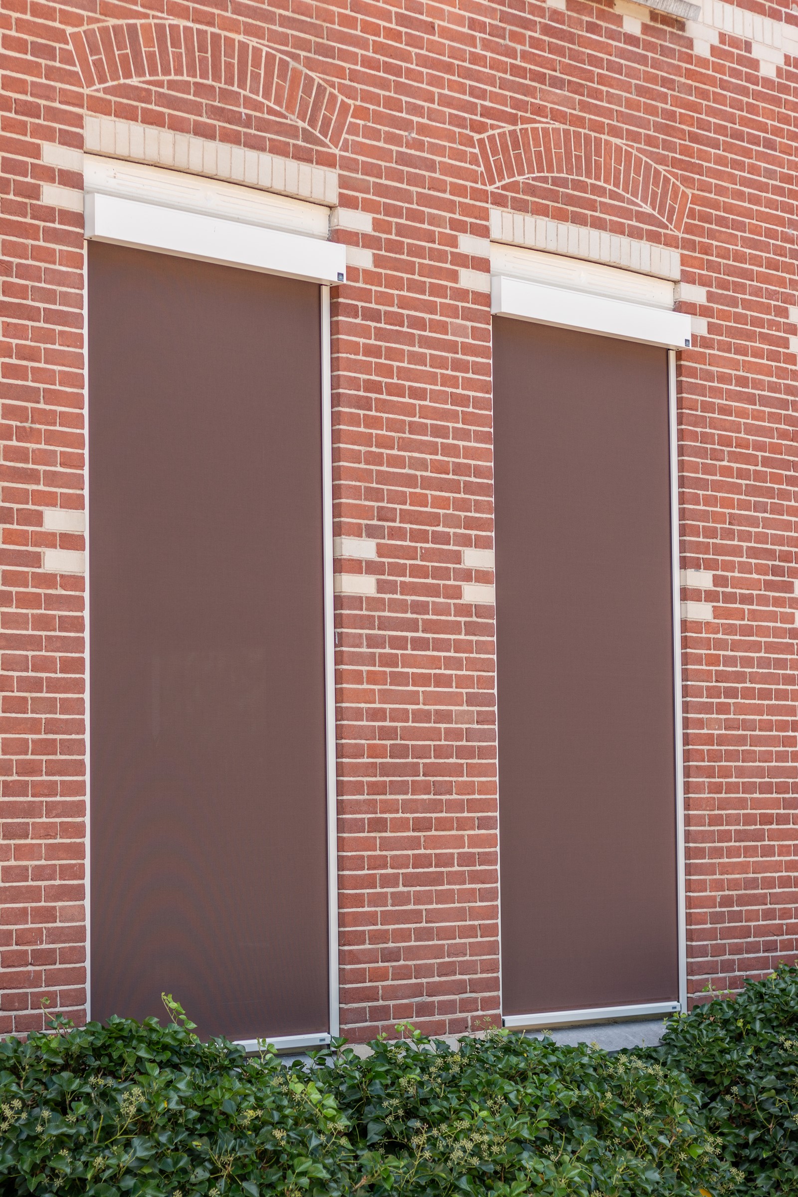 Omdat het een vrijstaand pand is, staat de hele dag zon op het gebouw. Met screens blokkeer je de warmte van alle kanten en komt er geen felle warmte langs of onderdoor naar binnen. Zo kunnen wij binnen ook gemakkelijker alles zien op onze computers maar komt er nog genoeg daglicht binnen om de lampen niet aan te hoeven doen.