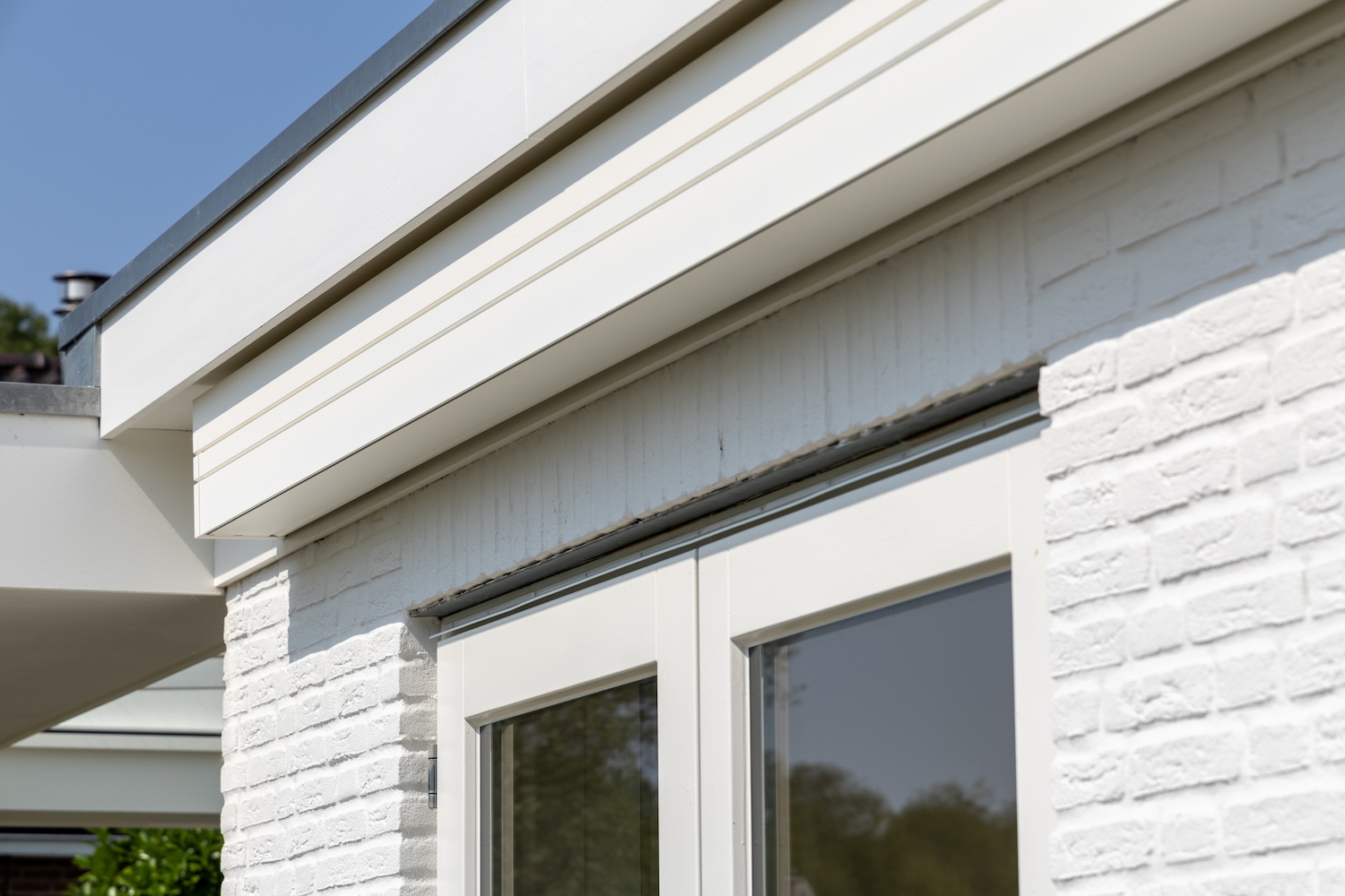 Voor hun nieuwe woning wilden ze een zonweringoplossing die perfect aansloot bij de moderne uitstraling van de gevel, zonder dat deze in het oog springt. De keuze viel op het Flatline XL knikarmscherm, vanwege het grote formaat, de rustige vormgeving en de mogelijkheid om het zonnescherm in exact dezelfde kleur als de deklijst van de uitbouw uit te voeren. Het resultaat is een naadloos geïntegreerde terraszonwering, die nauwelijks zichtbaar is wanneer het scherm is ingetrokken.