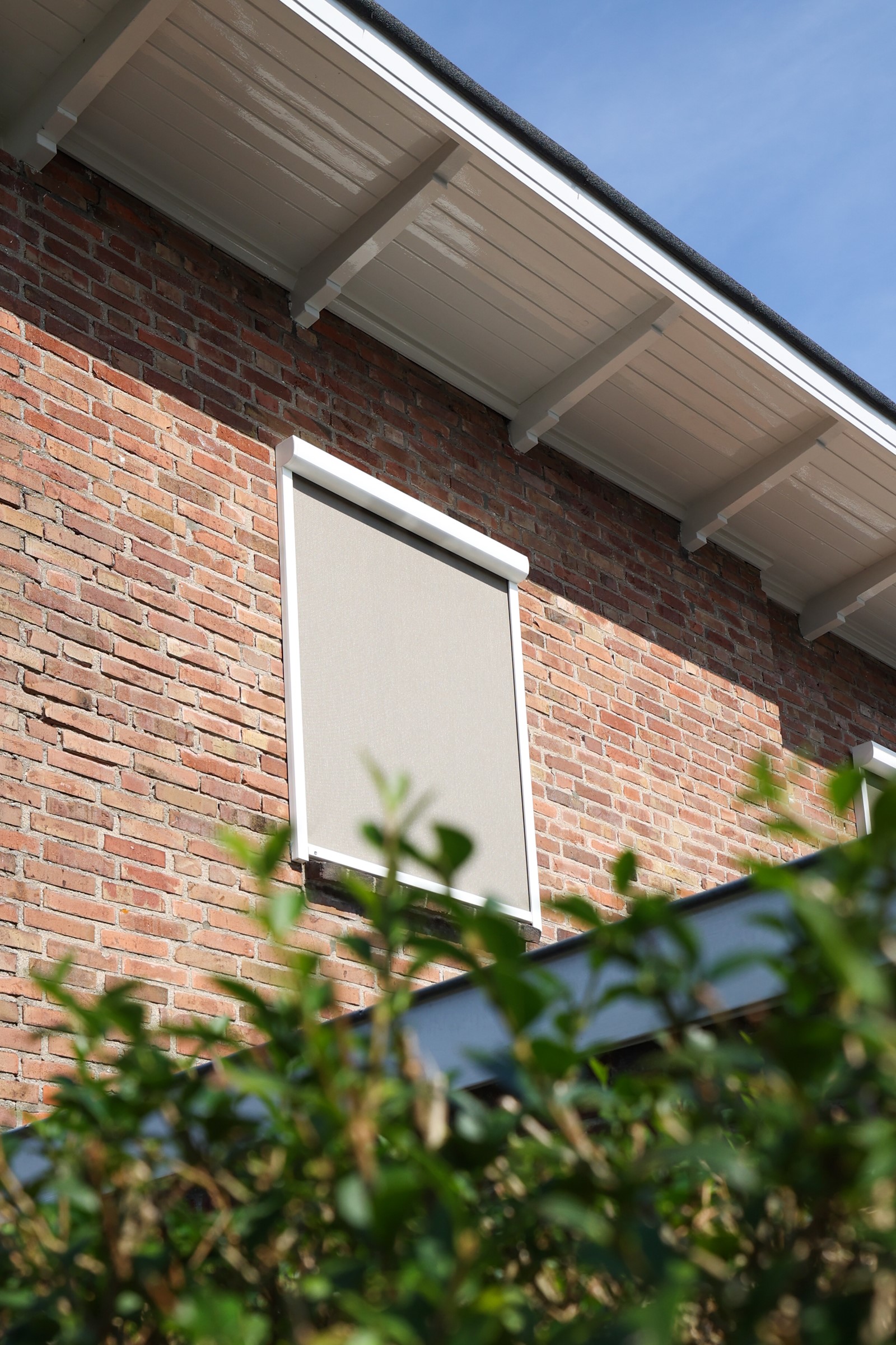 De woning in Eemnes heeft verschillende raampartijen waar direct zonlicht naar binnen viel. Vooral tijdens warme dagen liep de temperatuur flink op. Daarom is gekozen voor een combinatie van een groot knikarmscherm boven het terras en drie zipscreens voor de ramen. Zo is zowel de buitenruimte als het binnenklimaat optimaal beschermd tegen fel zonlicht en oververhitting.