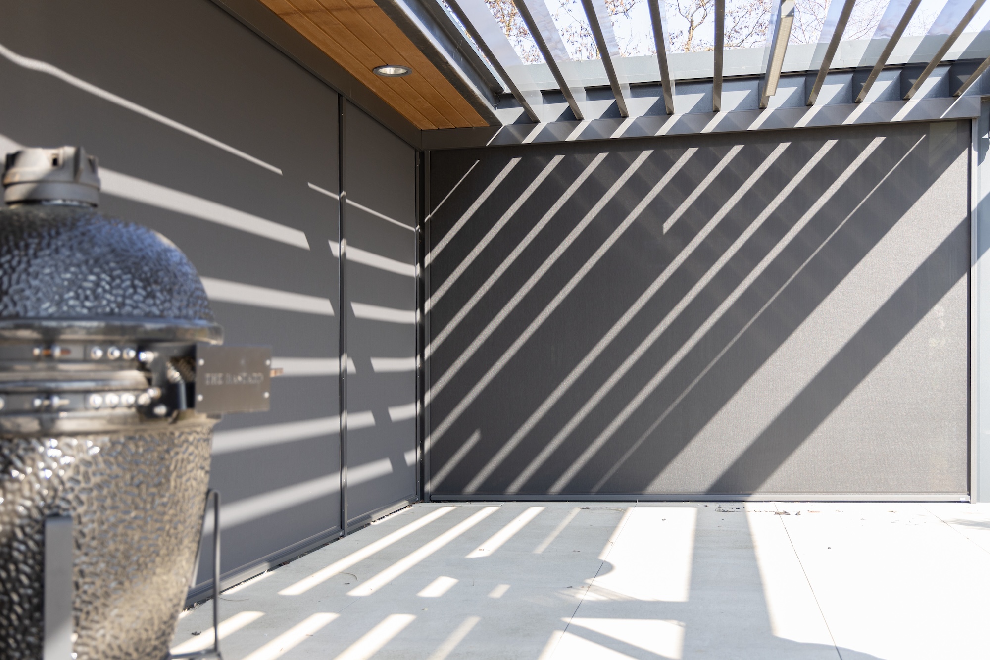 De screens weren de zon effectief, zonder het zicht naar buiten volledig weg te nemen. Daardoor blijft het interieur licht en open aanvoelen, terwijl de warmte buiten wordt gehouden. De bewoners genieten nu van een aangenaam koel huis, zonder concessies te doen aan uitstraling of uitzicht.