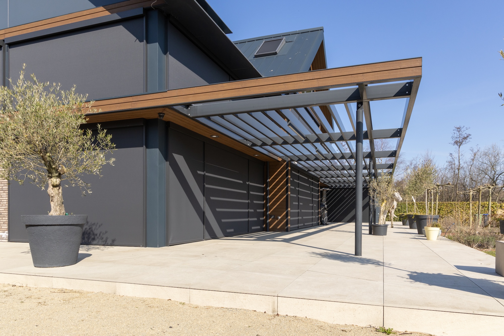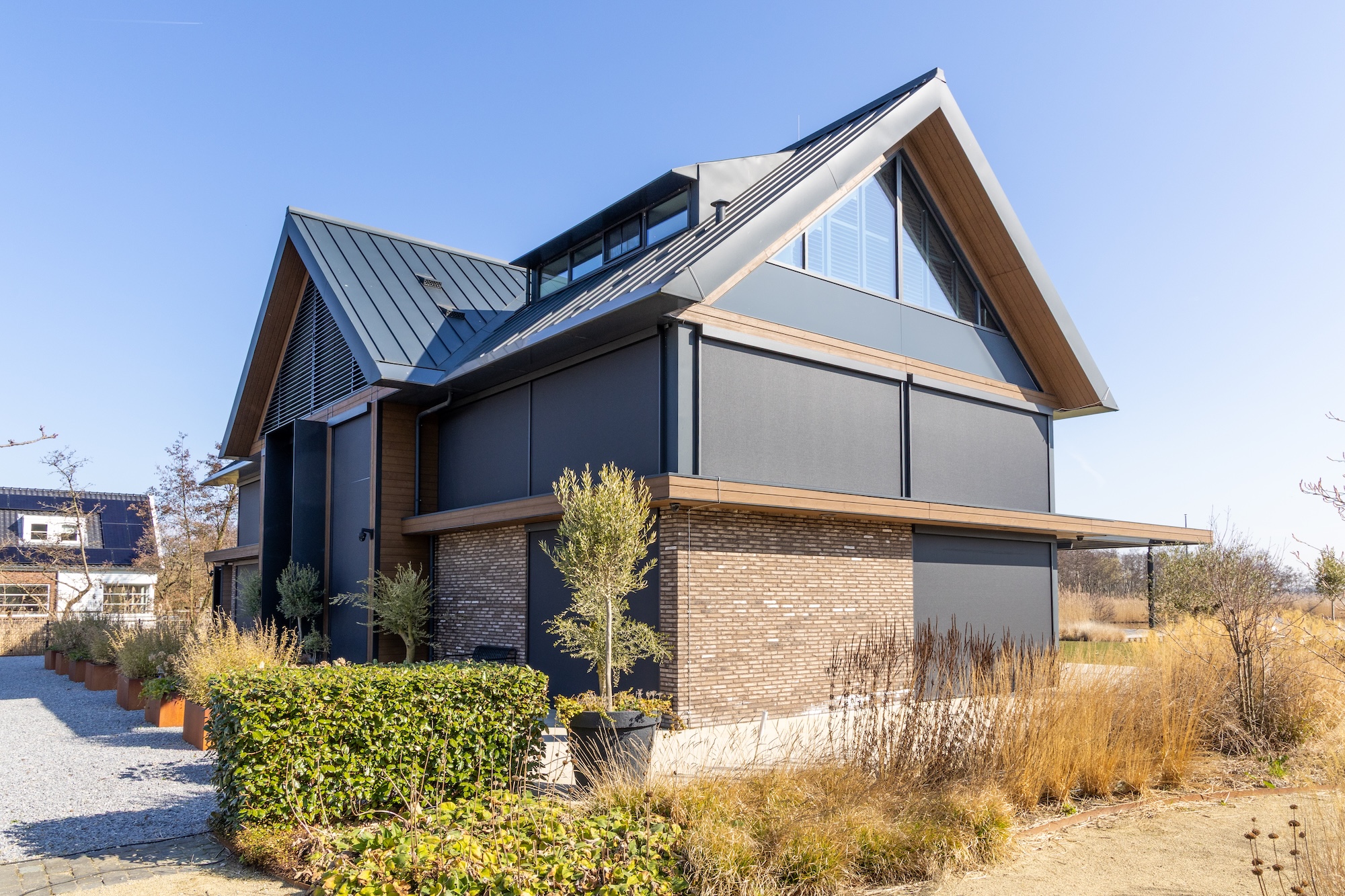 De woning in Nieuw-Loosdrecht is uitgerust met vloerkoeling en HR++ glas, maar dat bleek niet voldoende om de binnentemperatuur aangenaam te houden tijdens zonnige dagen. De zon schijnt de hele dag naar binnen, waardoor het ondanks alle voorzorgsmaatregelen vaak boven de 30 graden werd in huis. Voor de bewoners leidde dit tot een onaangenaam binnenklimaat. Een structurele oplossing was nodig – en die werd gevonden in hoogwaardige zonwering van Van der Wal.