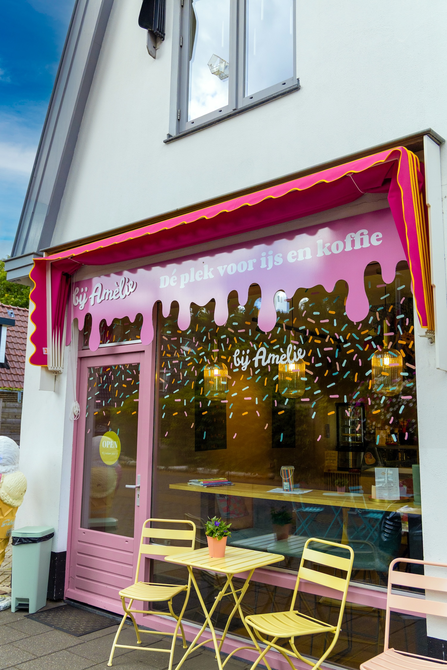 Roze markies bij ijssalon in Nieuw-Loosdrecht