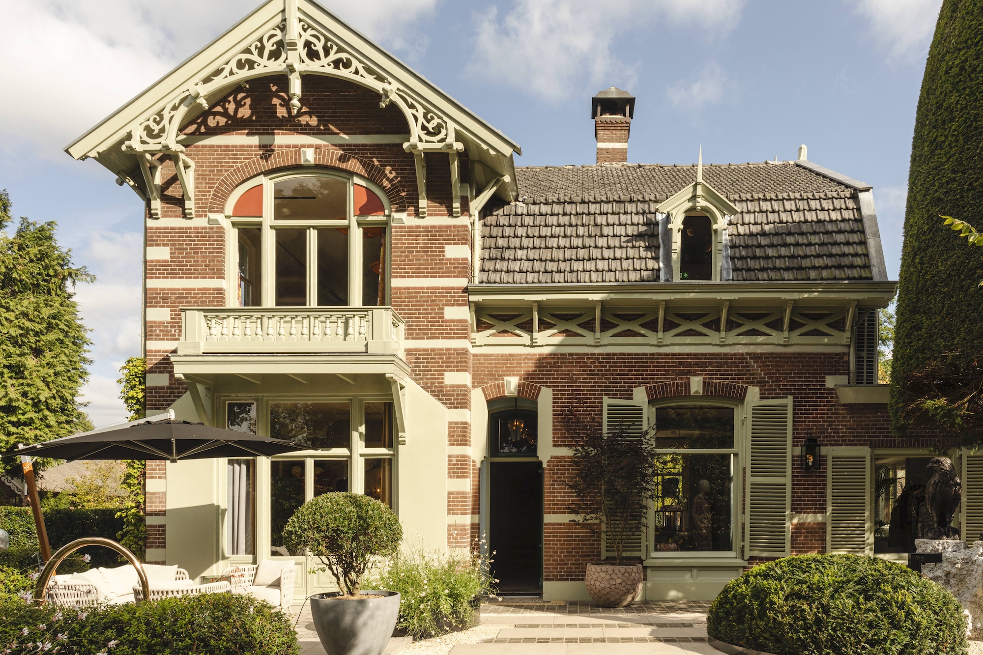 Een van de blikvangers in de tuin van Villa Arte is de Renson Amani lameloverkapping. Deze terrasoverkapping combineert esthetiek met functionaliteit en is uitgerust met een scala aan premium features. De Amani biedt optimaal comfort dankzij de verstelbare lamellen die voor schaduw en ventilatie zorgen. Wat deze overkapping extra bijzonder maakt, zijn de vouwwanden van natuurlijk Ayous-hout, die niet alleen warmte en karakter aan het ontwerp toevoegen, maar ook flexibel te openen en sluiten zijn, waardoor de ruimte naar wens kan worden aangepast.
