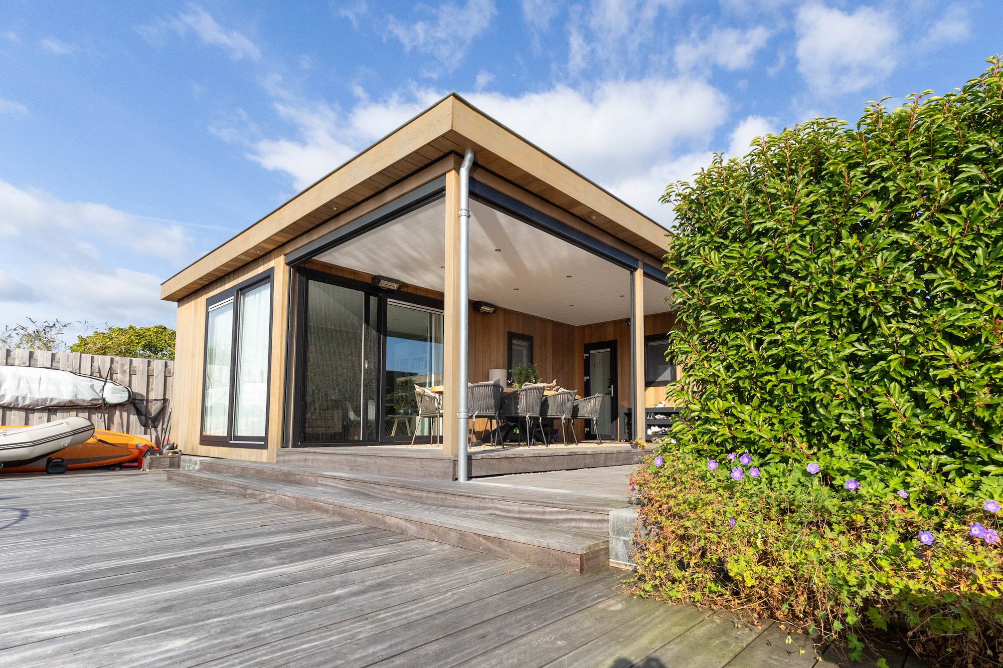 "Onze veranda is echt een heerlijke plek, maar omdat we zo open aan het water zitten, wilden we iets meer privacy en de mogelijkheid om de ruimte naar wens af te sluiten," legt meneer Jacobs uit. "Met de Novara zipscreens kunnen we de veranda volledig afsluiten als het waait of koud is, maar we kunnen hem ook helemaal openhouden op warme dagen. Zo hebben we altijd een plek die aanvoelt als buiten, maar met het comfort van binnen."