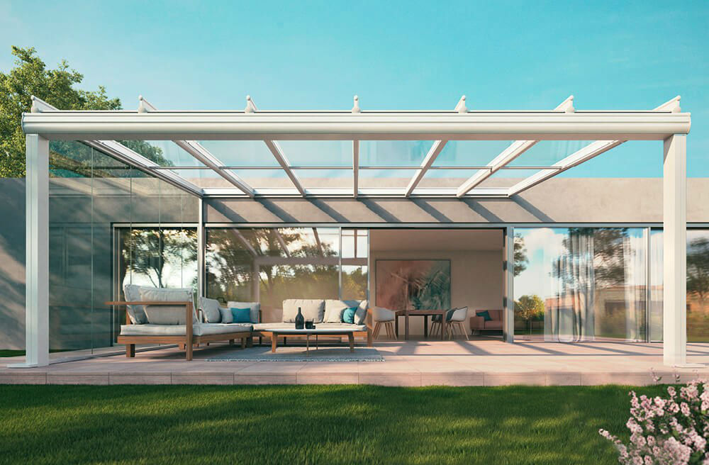 Maak van je overkapping een tuinkamer met de toevoeging van glazen wanden! Dankzij een glazen wand kan je nog eerder in het jaar buiten zitten. Een flexibele wand zoals een vouwwand of schuifwand maakt het mogelijk op de warmere dagen te ventileren.